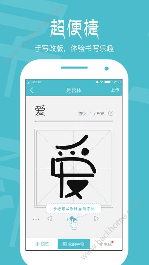 秀丽笔软件是一跨专门的字体工具,你是否觉得手机上自带的字体太过单调无聊,那就快来下载秀丽笔软件吧,在这里你可以采用全新的AI技术,轻轻松松打造专属于你自己的个性化字体,还可以实时选择自己diy哦,个性化的主题字体,让你的手机上看起来更加酷炫,有了秀丽笔软件简单的几步就可以完成,你可以直接使用自己书写的专门艺术字体,从此不再单调,直接替换到手机系统字体也非常方便,快来下载秀丽笔软件感受吧!