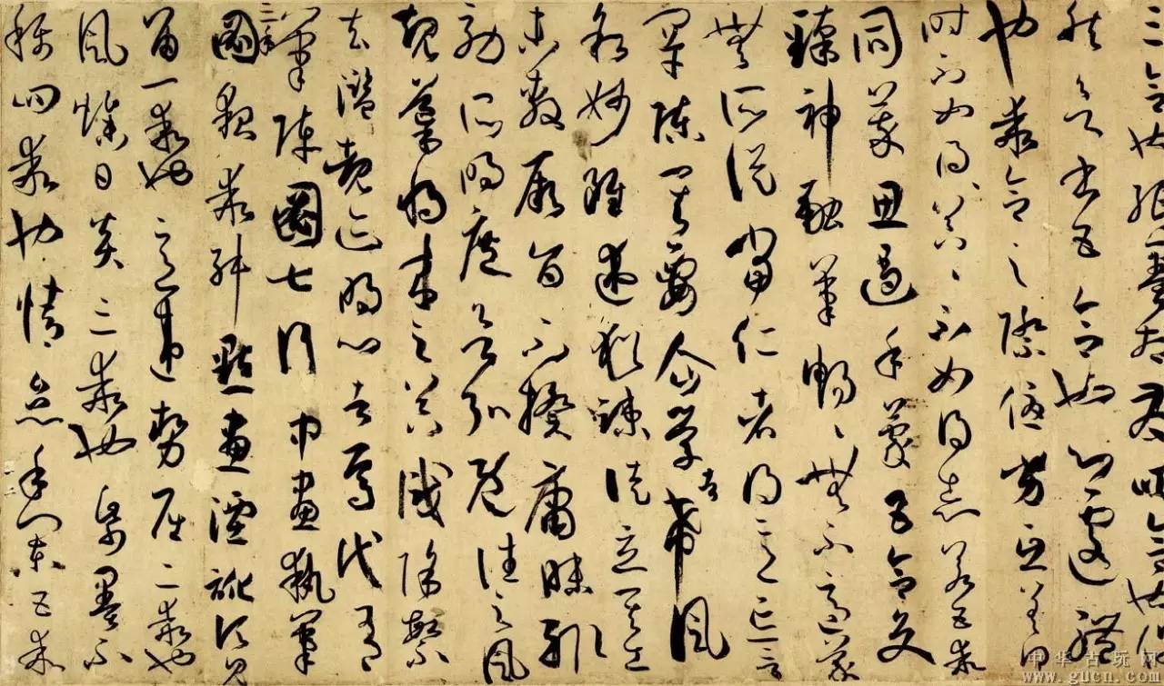 狂草是草书中最为放纵的一种,其结体更为放逸奔放,运笔跌宕起伏,运转自如。字与字多连绵,即使笔与笔之间有时不连贯,但也显得笔断意连,一气呵成。