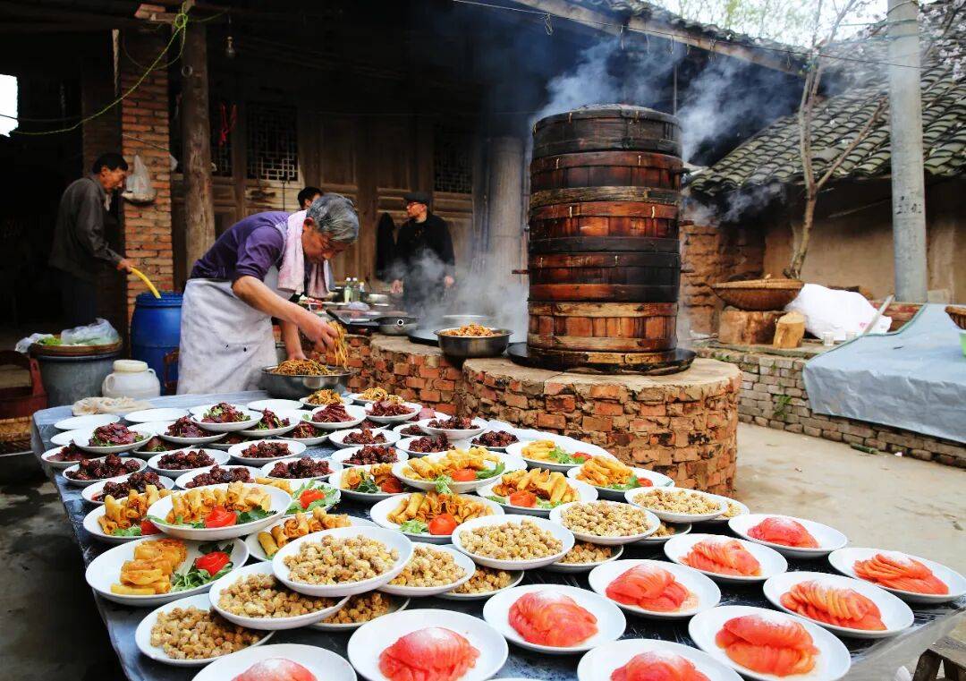 梓潼“九大碗”又叫“坝坝宴”,不拘泥于固定的九个菜式,以“九”这个虚数表达川人九九长寿、天长地久的美好祈愿。